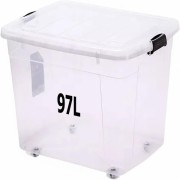 Premify Storage Box 97 L With Lockable Lid & Wheels | Clear Plastic Organizer |Transparent Box For Storing Clothes, Toys, Tools, Medicine, Office
