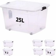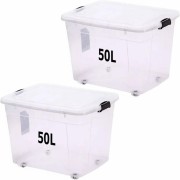 Premify Storage Box 50 L With Lockable Lid & Wheels Clear Plastic Organizer. (2 x 50L Storage Boxes)