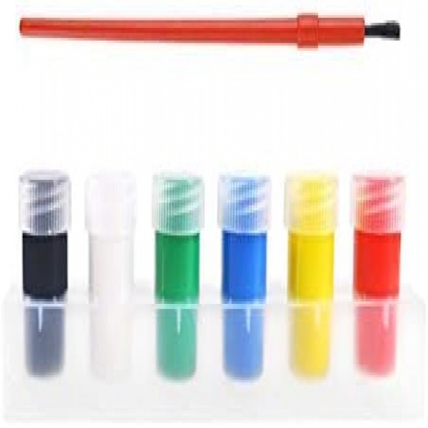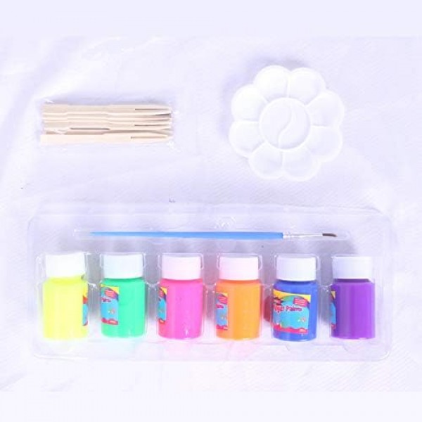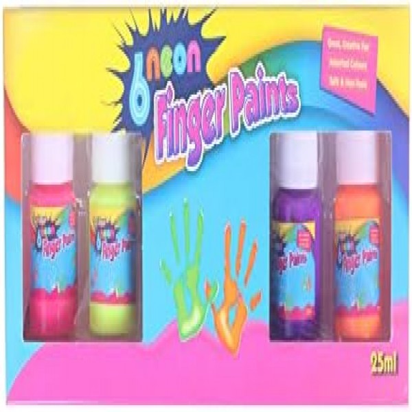 - 【Bright colours】Finger paint set contain: 6 vibrant colours in (25ml)plastic bottles, (Pink,Yellow, Blue, Green, Purple, Orange) with 1 plastic Palette, 1 Brush and 6 wooden Sticks For Mixing paint.