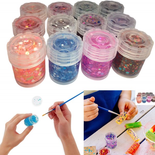 - These great glitter glues sets comes with 12 different colours in 24ml bottles.