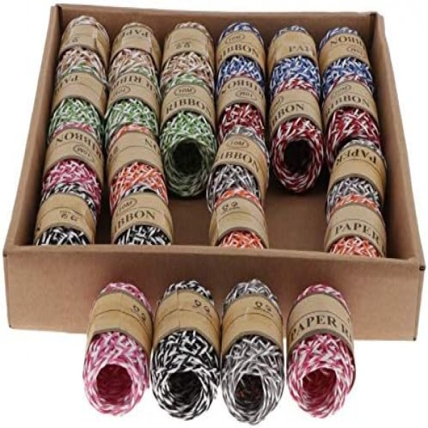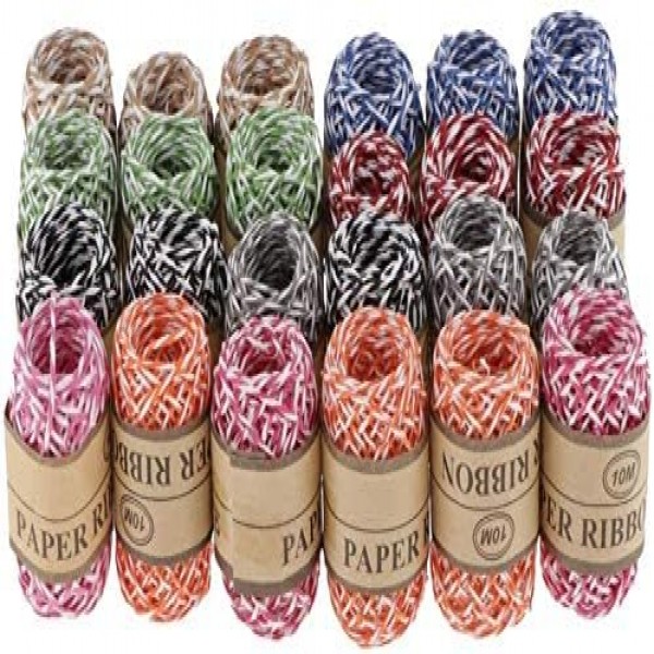 24 Rolls 8 Colors Raffia Paper Twine String Cords for DIY Art & Craft, Gift Box Wrapping, birthday party Home Decoration
