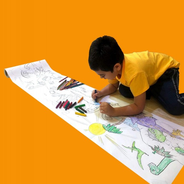 - SIZE: 44cm Wide, 30 meter (100ft) Length. White with dinosaur sketches for coloring