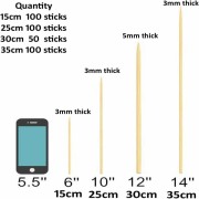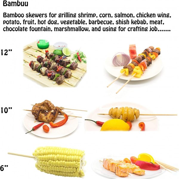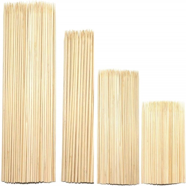 - THE UPGRADED BAMBOO SKEWERS: You can get 350 pcs bamboo sticks with different length like 100(14inch),100(12inch),100(6inch) AND 50(12 inch). all sticks are 3mm thick but 12 inches 50 sticks are 5mm thick.