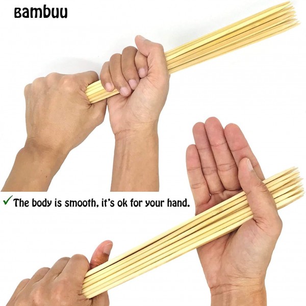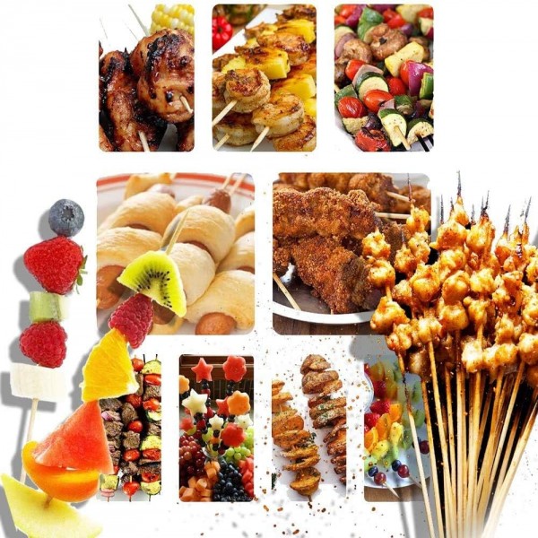 - FOOD GRADE: 100% natural bamboo skewers are clean and no splits debris. They are made of the natural bamboo, each bamboo skewer is selected carefully, and makes the bonfires & campfire party wonderful.