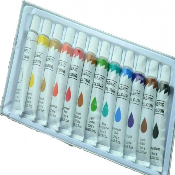 Fabric Paint Set 12ml x 12 Paint Colours Tubes, Art Supplies, Paints, Non-Toxic cloth Paintings colors Set for Beginners Students & Artists,