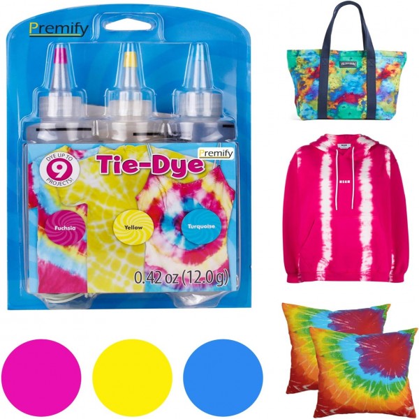 - Premify Ideal Tie-dye Paint Gift, it is easy to find the color you want by mixing different colors . Absolutely beginner-friendly Safe and non-toxic, particularly suitable for children and students. Great to use with fabric like cotton, rayon of super absorbent material for best results. Its color is very vibrant and the patterns produced with it will give people energy.
