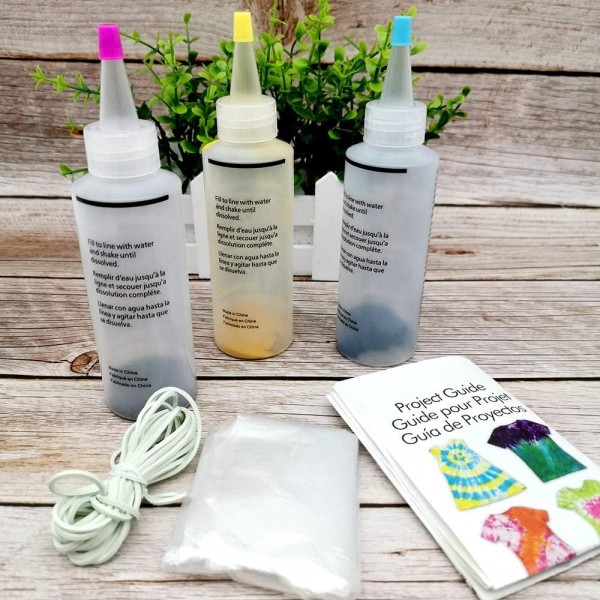 - Package Included: 3pcs * Dyes (different colors), 20Pcs * White Rubber Band, 4Pcs * Disposable Gloves, 1PC * Instruction Manual.