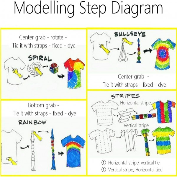 - Package Included: 3pcs * Dyes (different colors) , 20Pcs * White Rubber Band , 4Pcs * Disposable Gloves, 1PC * Instruction Manual.