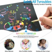 • 100% Safe & Non Toxic Material: Our magic scratch paper is safe and environmentally friendly, made of premium paper & nature wooden stylus. Children play in a non-toxic environment that good for the healthy growth.