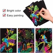 • ✍️SCRATCH PAPER EDUCATION KIDS -- Use the stylus to scratch away the black matte surface of the paper, revealing the background, so fun plus allows for amazing creative artwork, and much more! Makes an excellent arts and crafts activity for kids or grown-up artists! Keep kids busy with this delightful craft supply!