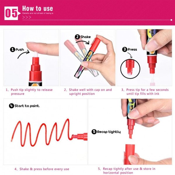 • 【EVERYONE IS AN ARTIST】 - Our markers will make you feel like a professional artist. Weather you’re a teacher, a student, a busy mom or a happy grandma, these chalkboard markers will help show your talent and will bring light and happiness to everyone around you.