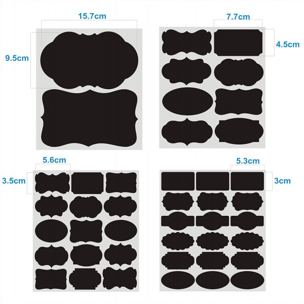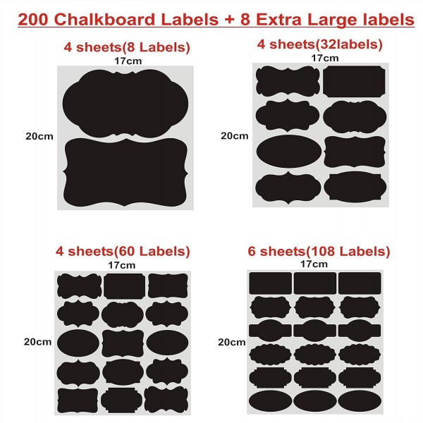 - β A MULTI-PURPOSE DIY CHALKBOARD LABEL: Works great for mason jars, jelly, spice, jam, herb, candy, cookie or seasoning jars, canning jar, round bottles, wine glasses, coffee cups or tea tin boxes, canisters, wooden wicker baskets, folders, office supplies, classroom toy bins. Organizing and decorating Chalkboard Labels are a good choice for kitchen pantry storage labels. Come in big size to fit more information and symmetric design you can cut in small, mini and medium sizes for different usage