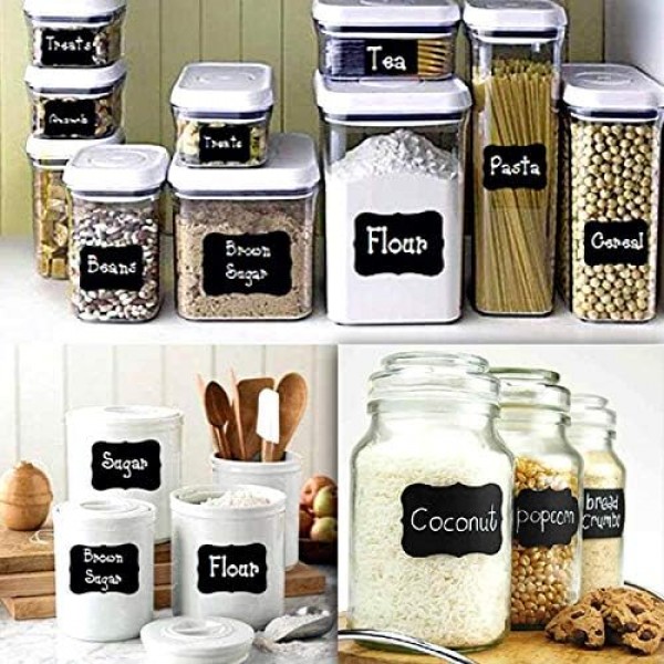 - β PREMIUM QUALITY LABELS: Matte finish with a crisp clean uniform shape. The surface is not shiny, glossy or slippery; Heavy duty with an appealing look. These are Premium VINYL stickers - allow regular chalk or any liquid chalk marker to write on. The ink dries quickly and it doesn't flake off; Self- adhesive, Washable, and refrigerator.
