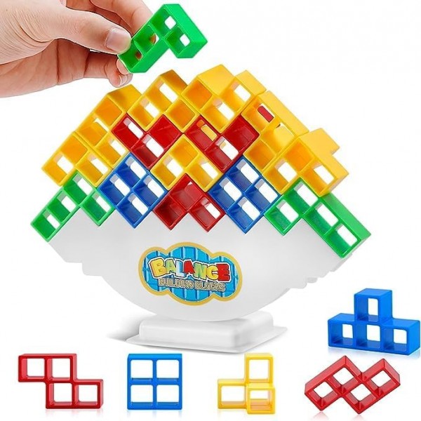 - 🎁PACKAGE CINTENT: The balance building games consists of 96 blocks in 4 different colours. A base and 22 cards make up. Suitable for various occasions, such as picnic, party, barbecue, camping and so on. Ideal gift for kids, friends, students, children and family.