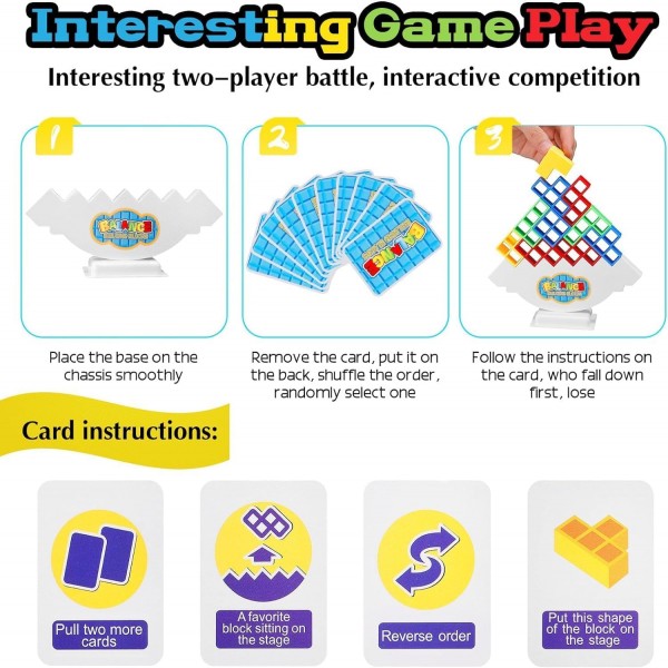 - 🎁PACKAGE CINTENT: The balance building games consists of 36 blocks in 4 different colours. A base and 22 cards make up. Suitable for various occasions, such as picnic, party, barbecue, camping and so on. Ideal gift for kids, friends, students, children and family.