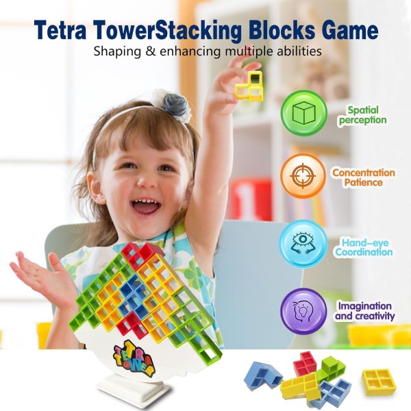 - ❇️EDUCATIONAL TOY: The colourful balancing blocks can attract children's eyes and attention and help them learn colours. Through the game you can exercise your child's hand-eye coordination and balance. It is a good choice for developing intelligence, concentration and patience.