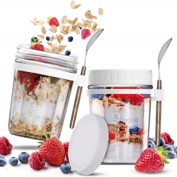 - [Wide Application] These overnight oat jars are suitable for preparing breakfast, Suitable for DIY overnight oats, store grains, nuts, salads, parfait, jams, Perfect as Jam jars, traveling, food jars, pudding jars, spice jars, food paste jars, fridge storage etc.