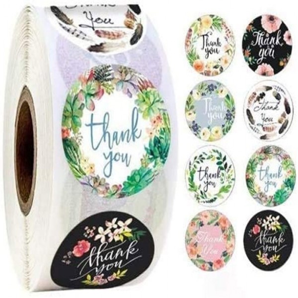 WHAT YOU GET:1 roll of thank you stickers.Total 500 thank you stickers in 8 unique designs.