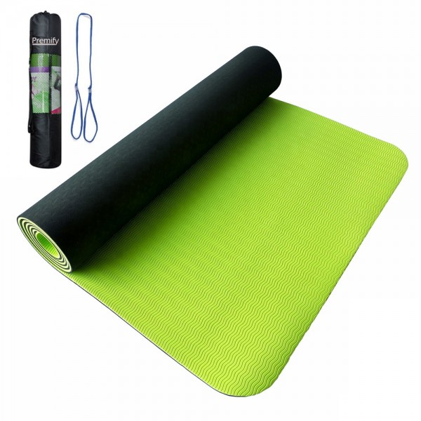 Premium TPE Yoga Mat green 8mm (size 183cm x 61cm) with carrying bag, Anti-slip double layer Eco friendly 100% latex & PVC Free (Chloride Free), gym floor exercise carpet mattress