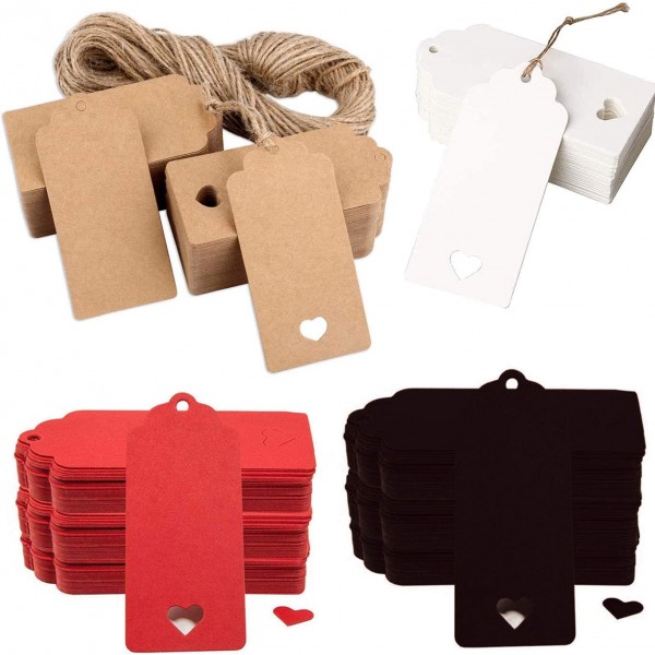 200pcs Mix Color Kraft Paper Gift Tags with 25m Natural Jute Twine | Gift Wrap with These Rectangle Hollow Heart Hang Labels