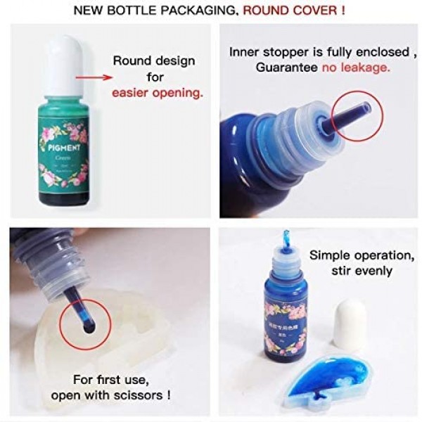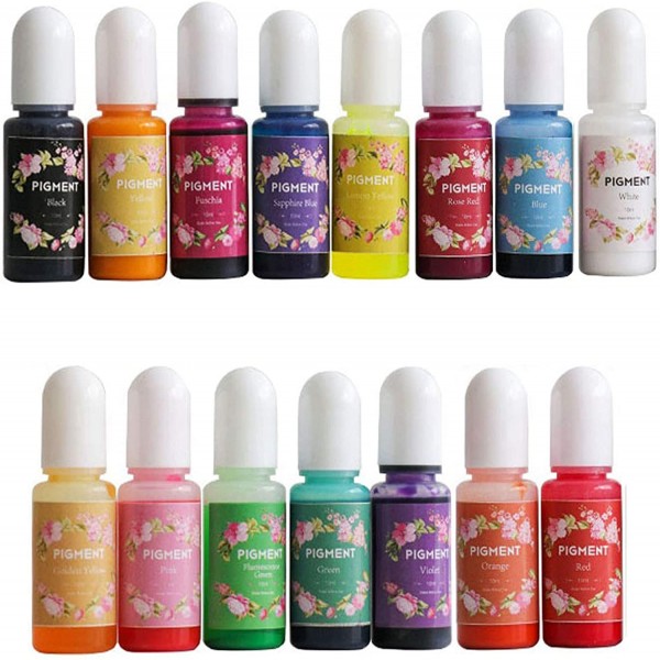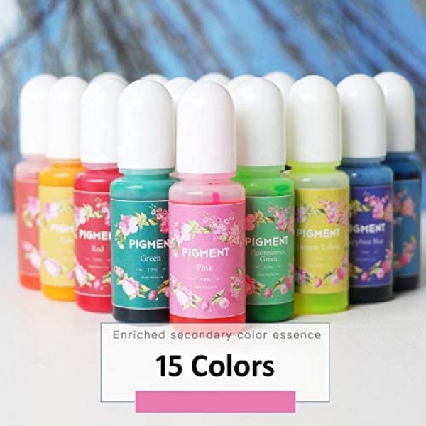 - ✔️ JUST A DROP MAKES BIG DIFFERENCE: 15 bottles of 10ml each Epoxy Resin Pigments are of High concentration, just a drop and you will be shocked by the strong dyeing effect. Make sure to add a little at a time to see what colour you want to achieve.