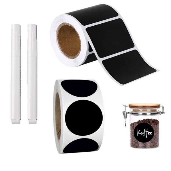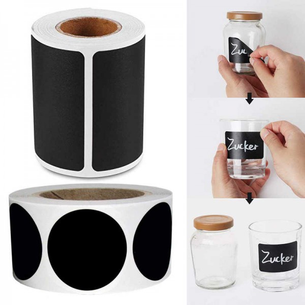 - Round Labels = Black Matt vinyl Chalk 120 labels (50mmX50mm size) + Rectangle Labels = Black Matt vinyl Chalk 120 labels (55mmX35mm size) so total 240 Labels