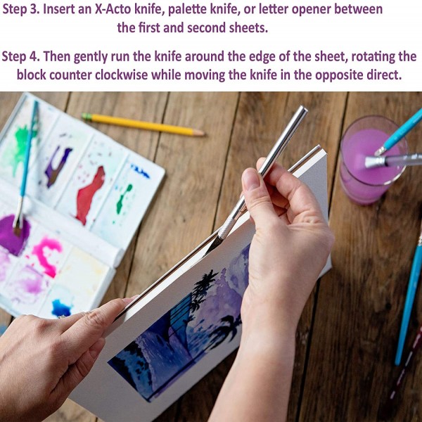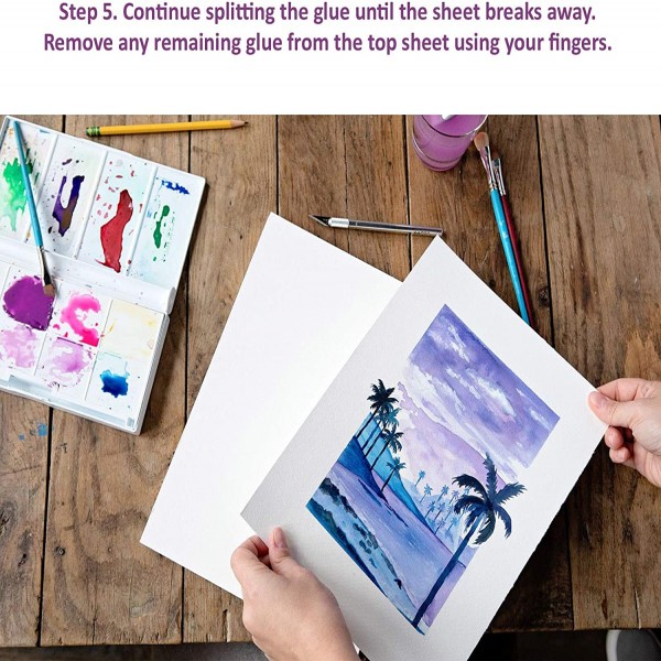• This pad was intentionally glued along all four edges which eliminates the need for stretching the paper prior to painting. You can load the water on and since all four sides are glued down, the paper will stay nice and flat. Once your painting is dried, it can be removed and the sheet underneath will be clean and ready for use.