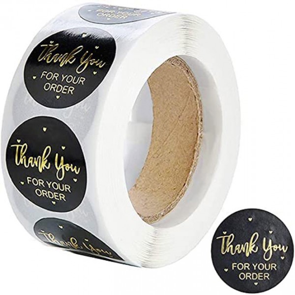 1 Inch Thank You Stickers, 500Pcs Black With Gold Printed THANK YOU FOR YOUR ORDER Stickers Labels for Baking Packaging