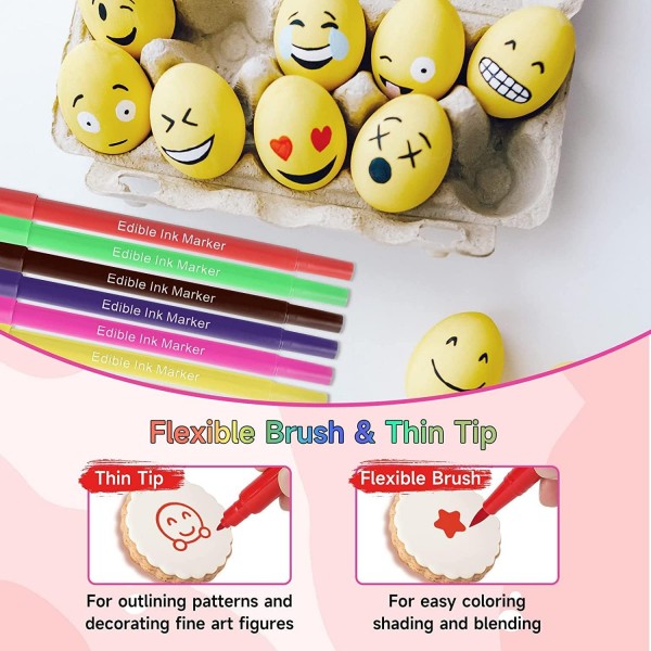 - 🌈【Dual-ended Tip Design This edible pens for cake decorating has a unique double-sided nib design.The wide nib is suitable for filling colors and the thin nib is suitable for writing letters and outlining.It will give you more design flexibility and add details to various snacks.