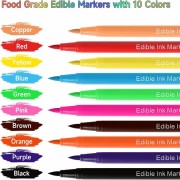 - 【10Pcs Food Coloring Pens】 10 food coloring pens. The set includes all the colors you need: black, red, yellow, dark green, light green, blue, brown, pink, purple and orange.Colorful colors stimulate children's creativity and hands-on ability that make baking fun and personal.