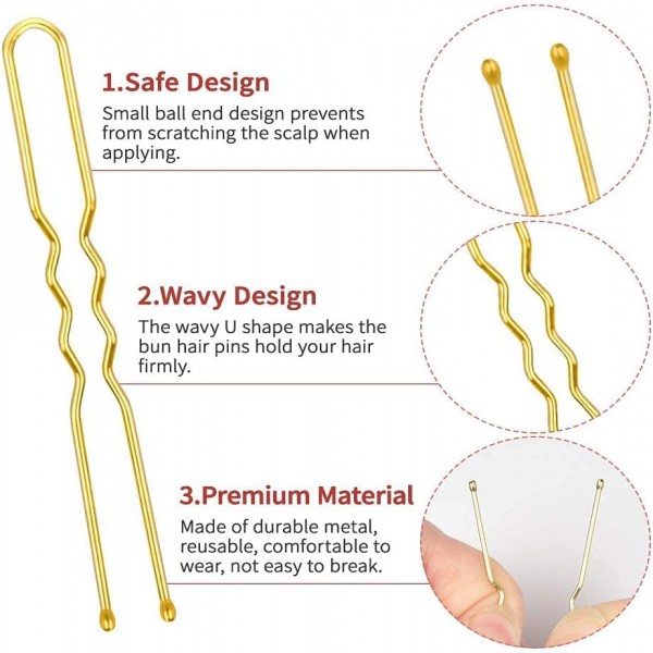 - Safer Use Not Hurt Yourself:The hair pins have small round balls at both ends so that can protect your hair from scratching.Soomth body surface make it easy to insert.With wave design of each hair pin, they are elegant and beautiful,with enough resistance and tightening prevent from falling off.