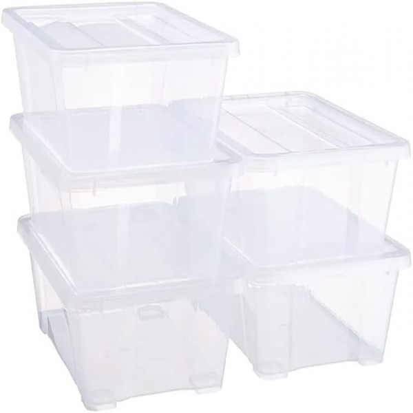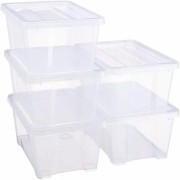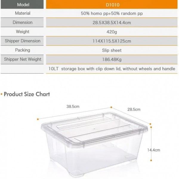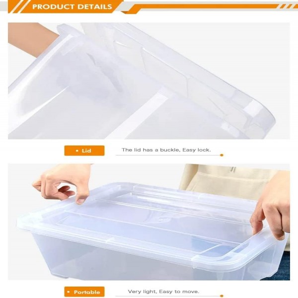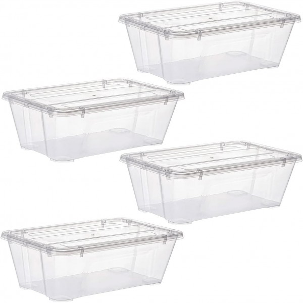 - TRANSPARENT – 4 Plastic Boxes 10 Liter Each with Lid ( box size 39cm X 29cm X 14cm), Super clear plastic material makes the body and lid clear enough to identify the elements outside from any angle.