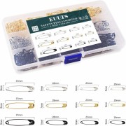 - [Size and number of safety pins]: 4 Assorted sizes for all your needs: Our upgraded box now contains 4 differently size safety pins to meet all your daily needs: 19 mm x 150pcs (50pcs Black + 50pcs Gold + 50pcs silver pins), 22 mm x 150pcs (50pcs Black + 50pcs Gold + 50pcs silver pins), 27 mm x 120pcs (40pcs Black + 40pcs Gold + 40pcs silver pins), 37 mm x 120pcs (40pcs Black + 40pcs Gold + 40pcs silver pins) total of 540 safety pins in pack.