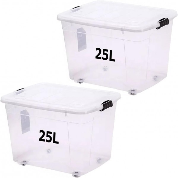 - TRANSPARENT –2Pcs 25L Storage Boxes with Lids ( box size 45cm X 32cm X 27cm), Super clear plastic material makes the body and lid clear enough to identify the elements outside from any angle.