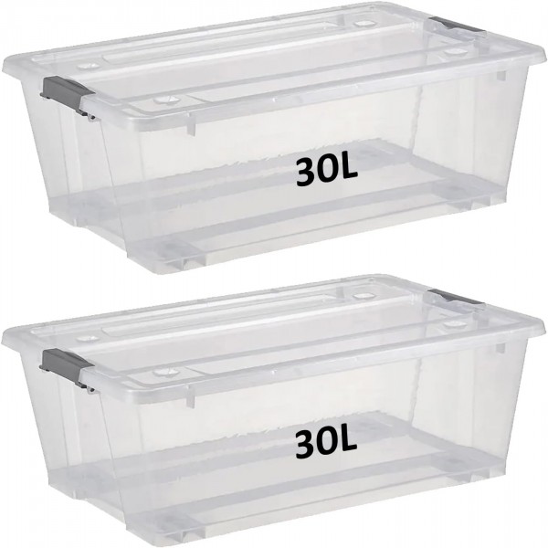 • TRANSPARENT – 30L Storage Box with Lid ( box size 57cm X 39cm X 21cm), Super clear plastic material makes the body and lid clear enough to identify the elements outside from any angle.
