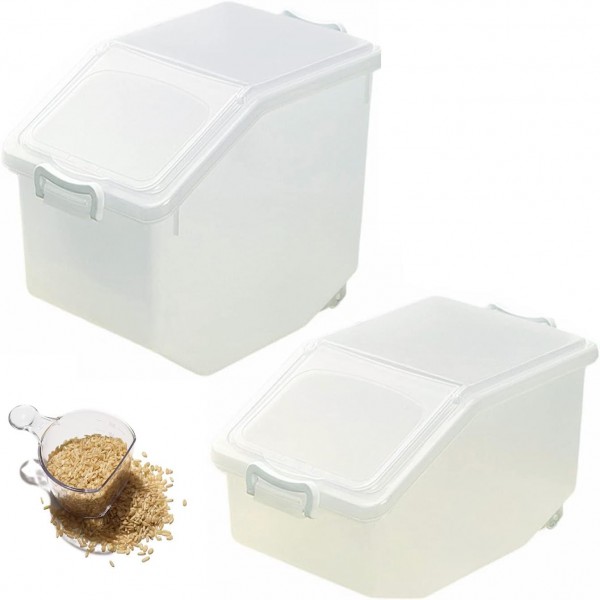 - Containers With Wheels : Our Cereal Storage Container is 50% transparent, which allows content to be identified at a glance. With wheels on one side its more easier and convenient to move. there are measuring cups with each container, which will make your cooking easier.