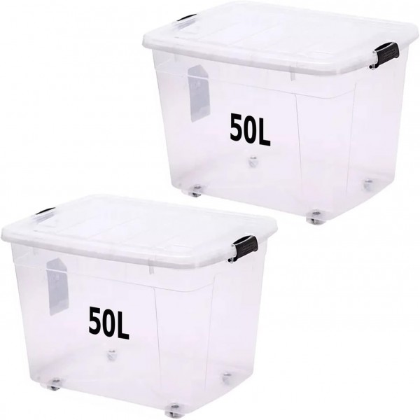 - TRANSPARENT – 2Pcs 50L Storage Boxes with Lids (box size: 53cm X 38cm X 33cm), Super clear plastic material makes the body and lid clear enough to identify the elements outside from any angle.