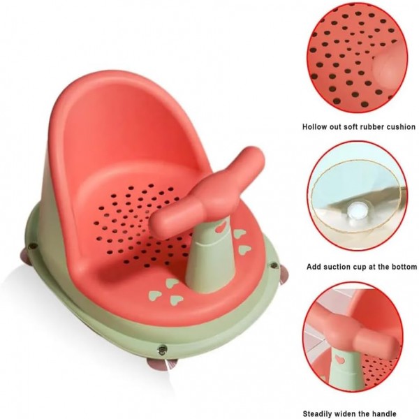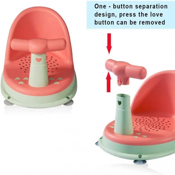 - 【Comfortable Backrest】This bathroom baby bath chair has armrests and a high backrest, so your baby will be supported enough and comfortable while taking a bath