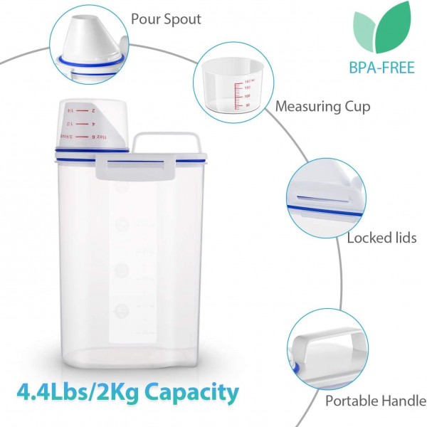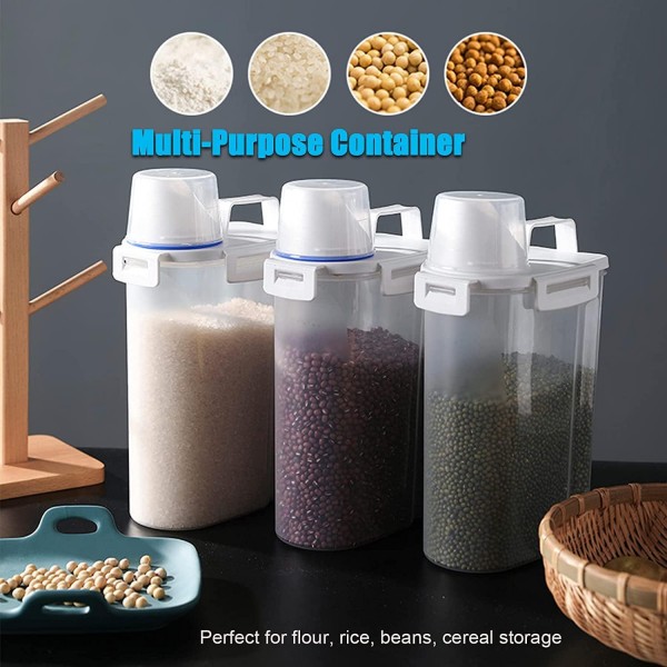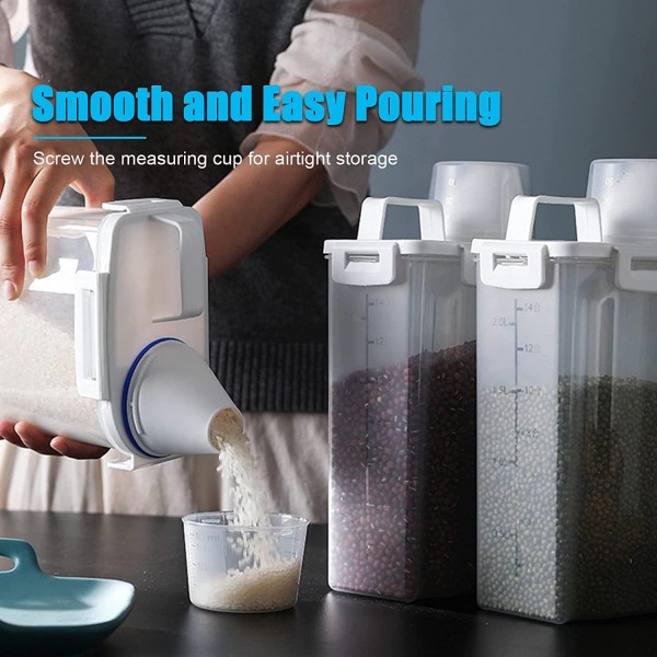 - [SET INCLUDES] This set comes with 2 pcs airtight storage containers with snap locking lids & Measuring Cups allowing you to organize your kitchen and pantry like never before, Our Kitchen storage containers can conveniently store a variety of foods, including kinds of dry foods, Rice, Sugar, snacks, flour, nuts and baking products.