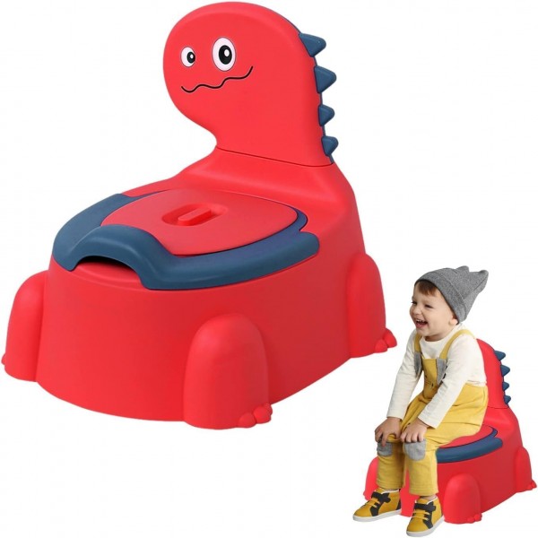 Premify Potty Toilet Potties Training Chair Baby Kids Boys Girls Toddler Dinosaur Urinal Pot Comfortable Children 1-6-Year Red