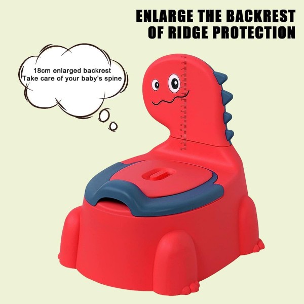 • DINOSAUR THEME - This dinosaur design potty makes training fun for your toddler. A larger, deeper, wider potty helps keep the baby's hip from smelly poo and splashing pee. The smooth inner wall is easy to clean. The kids’ toilet attracts babies to develop a good habit of going to the toilet.