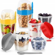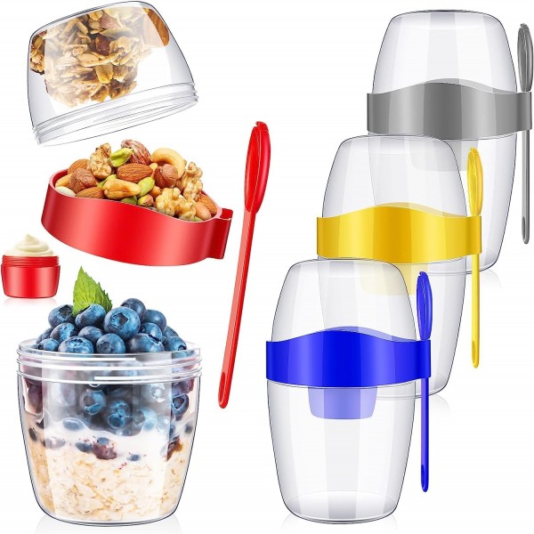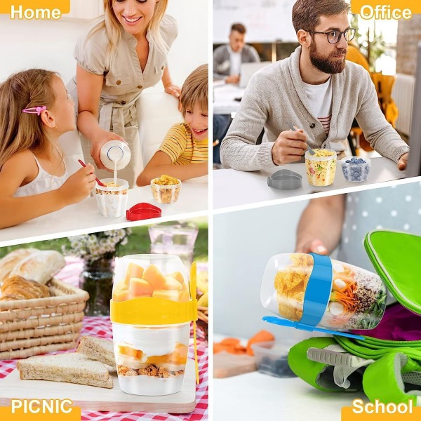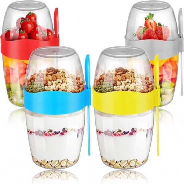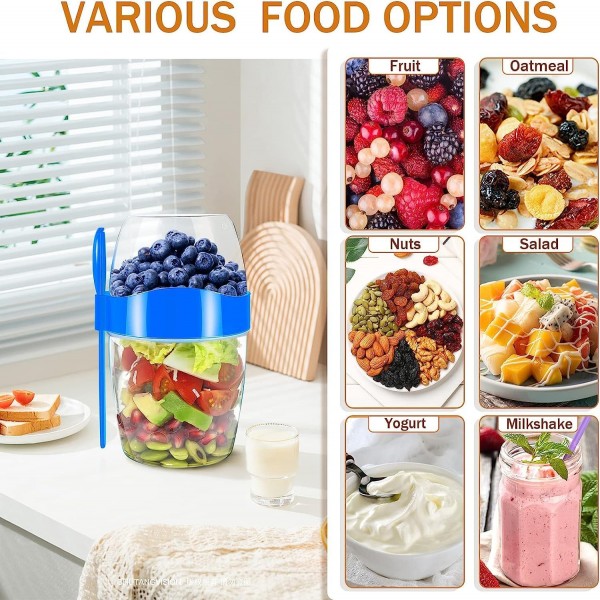 - 【Convenient & Leak-Proof】This yogurt container is great for grab and go foods, portable cereal to go anywhere you want, leak-proof design to strengthen the overflow prevention performance, even if the overnight oats jars are overturned, it can prevent accidental spillage to keep that the food fresh on the go.
