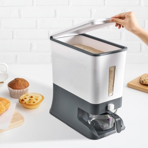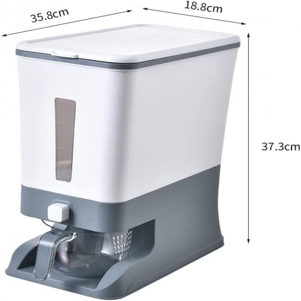 Premify Rice Dispenser, Large Cereal Dry Rice Storage Container Dispencer with Measuring Cup | Kitchen Supplies Grain Storage Container (Grey)