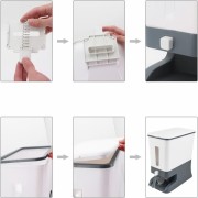 Easy To Use: With this kitchen organizer, you can quickly and easily quantify rice and whole grains by gently pressing the button without opening and closing the lid. There are small holes on the sides of the bowl to allow easy cleaning of rice and draining