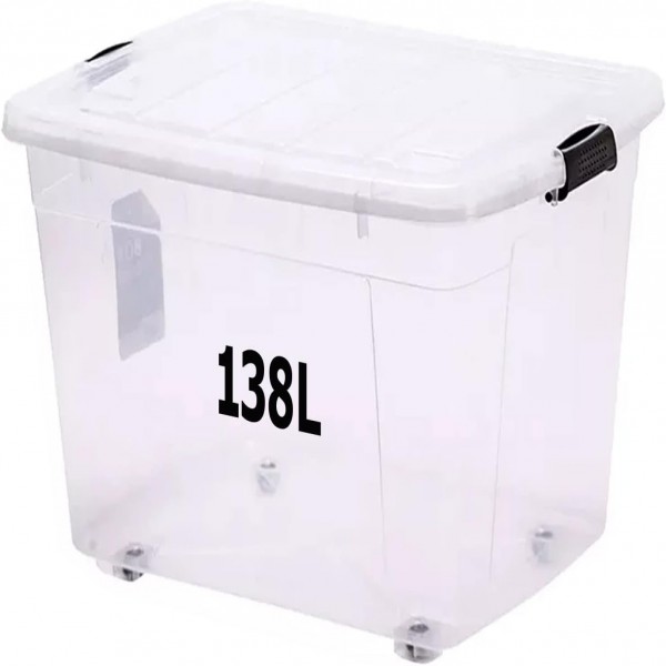 - TRANSPARENT – 138L Storage Box with Lid, Super clear plastic material makes the body and lid clear enough to identify the elements outside from any angle. Each Box Size: 73cm x 53cm x 47cm.