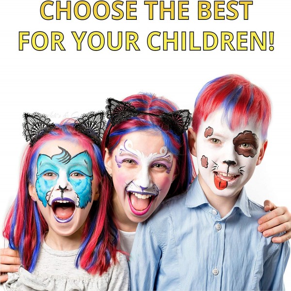 - Safe and Non-Toxic: Our face paint kit for kids is made with high-quality, non-toxic, and hypoallergenic ingredients that are safe for children's delicate skin. You can feel confident knowing that our face paints have been rigorously tested and comply with safety standards.