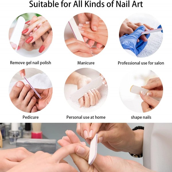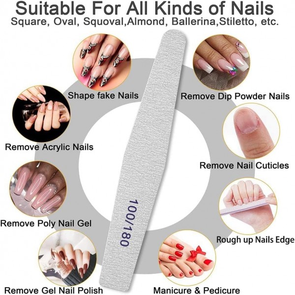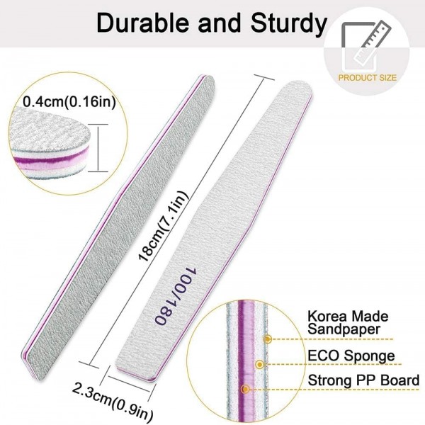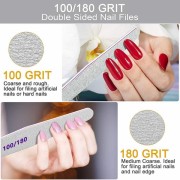 - DOUBLE-SIDED GRIT: These nail files are double sided, the two sides have different grits. One side is 100 grit, suitable for nail shaping and styling; the other side is 180 grit, used to polish the gel seal.