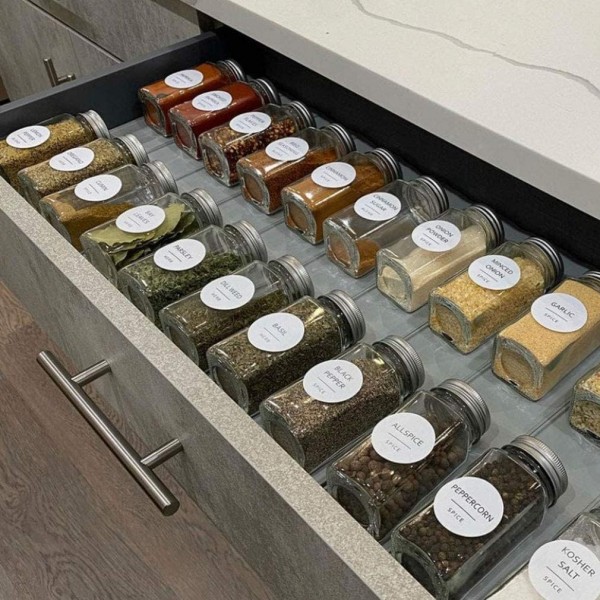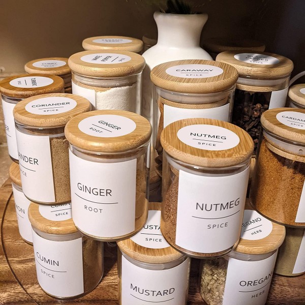- Minimalist Round spice labels: storage organization accessory for cabinet & drawer organization makeovers, spice label set by Premify. This listing is for the labels only. Does not include jars.