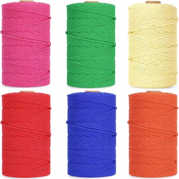 Premify 6 Pack 3mm Cotton Rope, Colored Cotton Cord, Macrame Colorful Natural Durable Handmade Art Material for Craft Wall Home Decorations (6 x 100M)