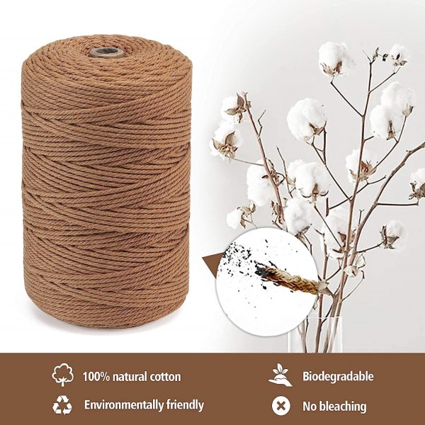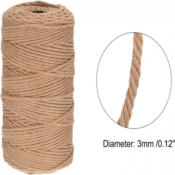 Premify 3mm Brown Cotton Rope, Natural Macrame Long Cotton Cord, Durable Handmade Art Material for Craft Wall Home Decorations (1 x 100M Brown)